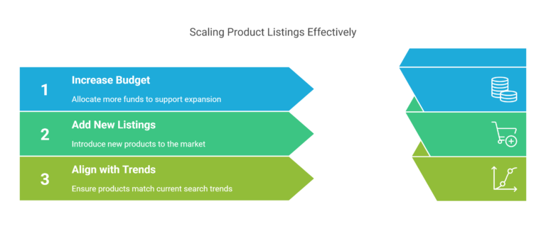 Once winning products are identified, it’s time to add more—but only if the budget grows too. Robin suggests raising the daily budget when new listings come in. For instance, going from 100 to 200 products should be accompanied by a boost from €100 to €200+ in ad spend.